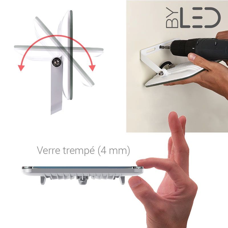 Mais ce projecteur LED se distingue surtout par son incroyable finesse de 3 cm qui en fait le projecteur le plus plat existant.