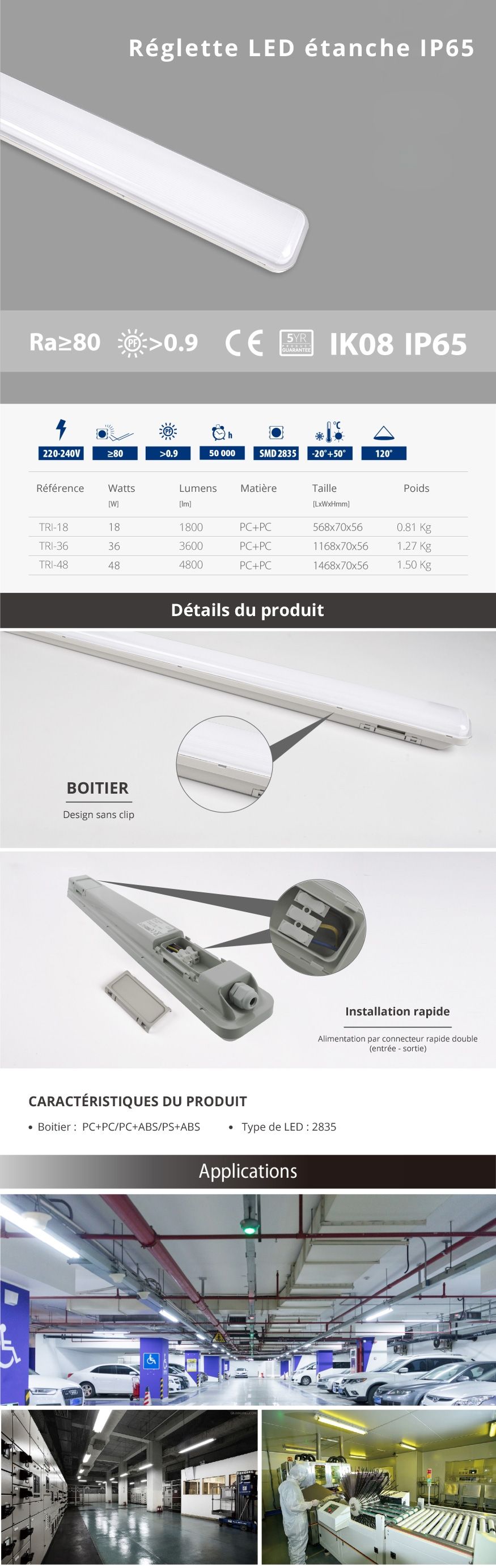 Résistante à la poussière, l'eau la corrosion et aux chocs importants, elle est idéale pour les parkings couverts, ateliers, locaux techniques, entrepôts, …