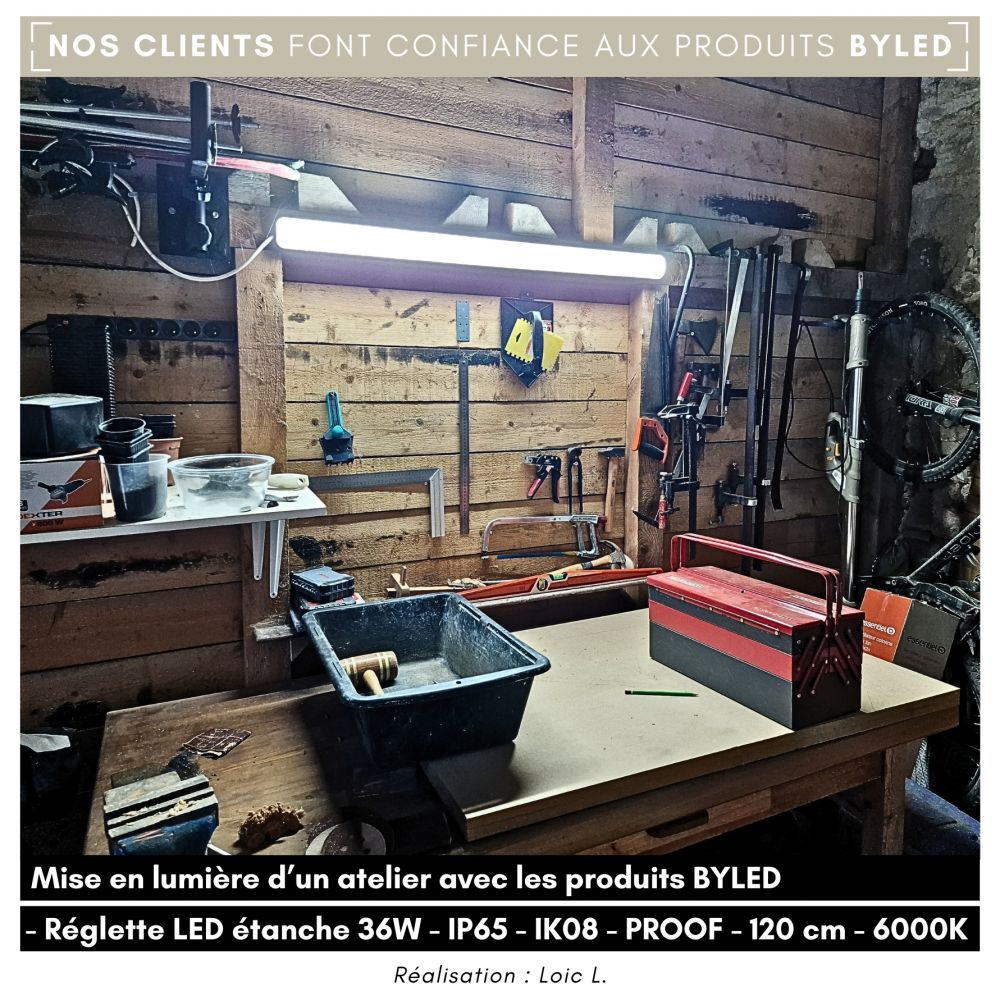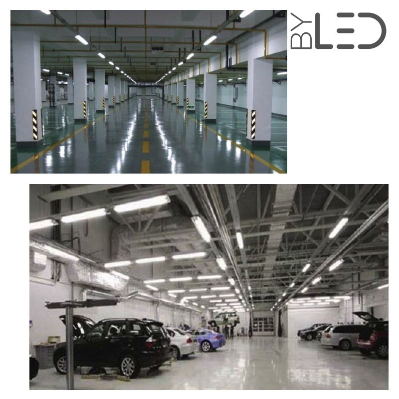 Résistante à la poussière, l'eau la corrosion et aux chocs importants, la réglette LED est idéale pour les parkings couverts, ateliers, locaux techniques, entrepôts, …
