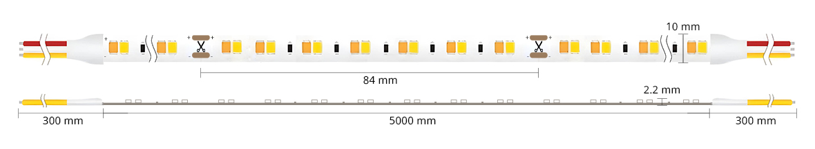 Ce modèle est composé de 2 circuits de LEDs, un en ambré et l'autre en blanc chaud, permettant ainsi de varier la température de couleur selon vos désirs. Plus on passe vers le ambré, plus la lumière dégagée sera chaleureuse. Pour contrôler la température de couleur de ce ruban, vous devez vous munir d'une télécommande et d'un controleur "Dimmer" , disponible dans la rubrique Accessoires de commande.