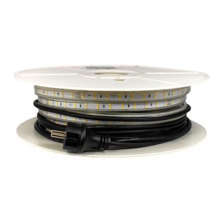 Le câble d'alimentation de 5 mètres facilite son installation, et l'indice de protection IP65 rend ce produit adapté pour une utilisation en intérieur et en extérieur. Cependant, veillez à ne pas immerger ce ruban LED 230V.
