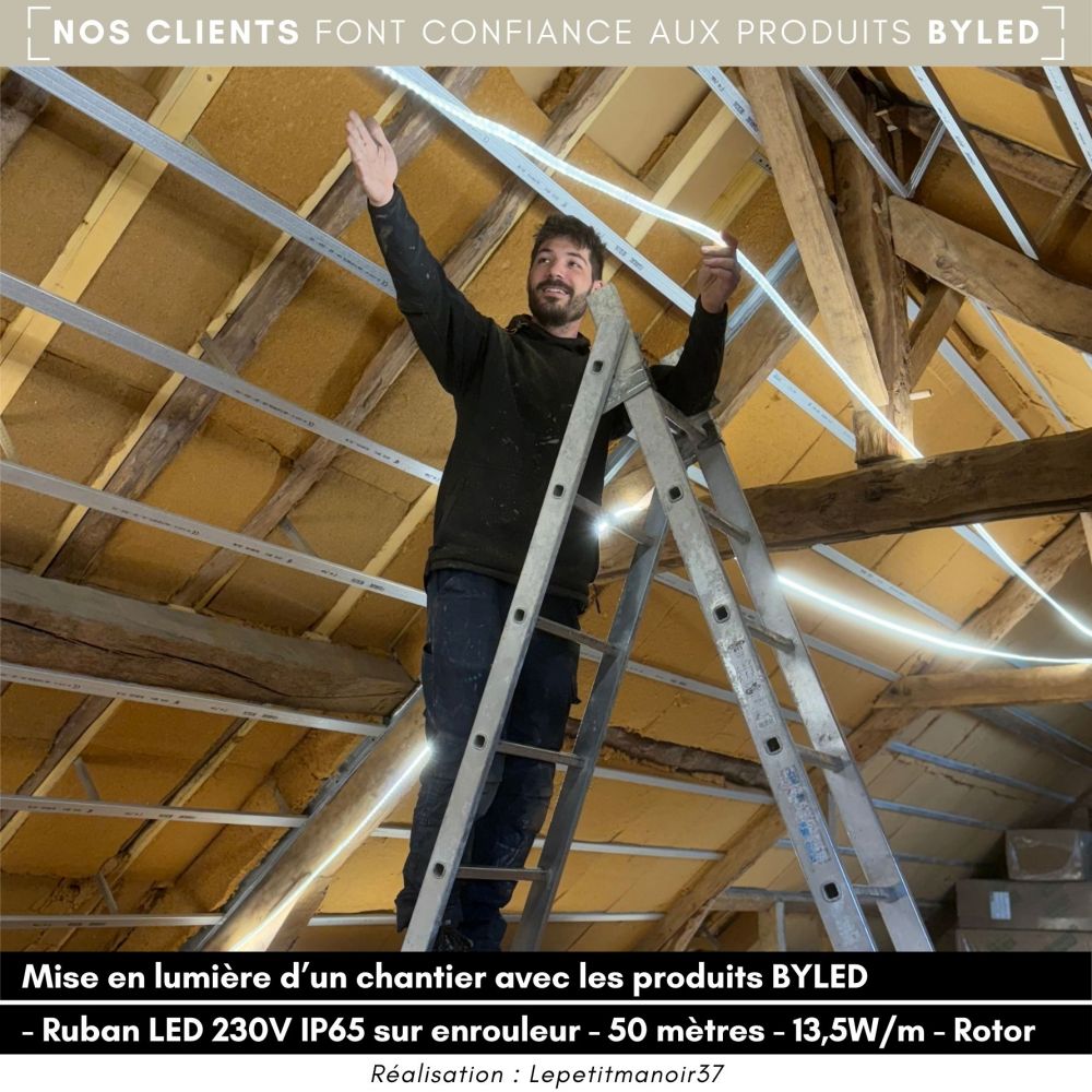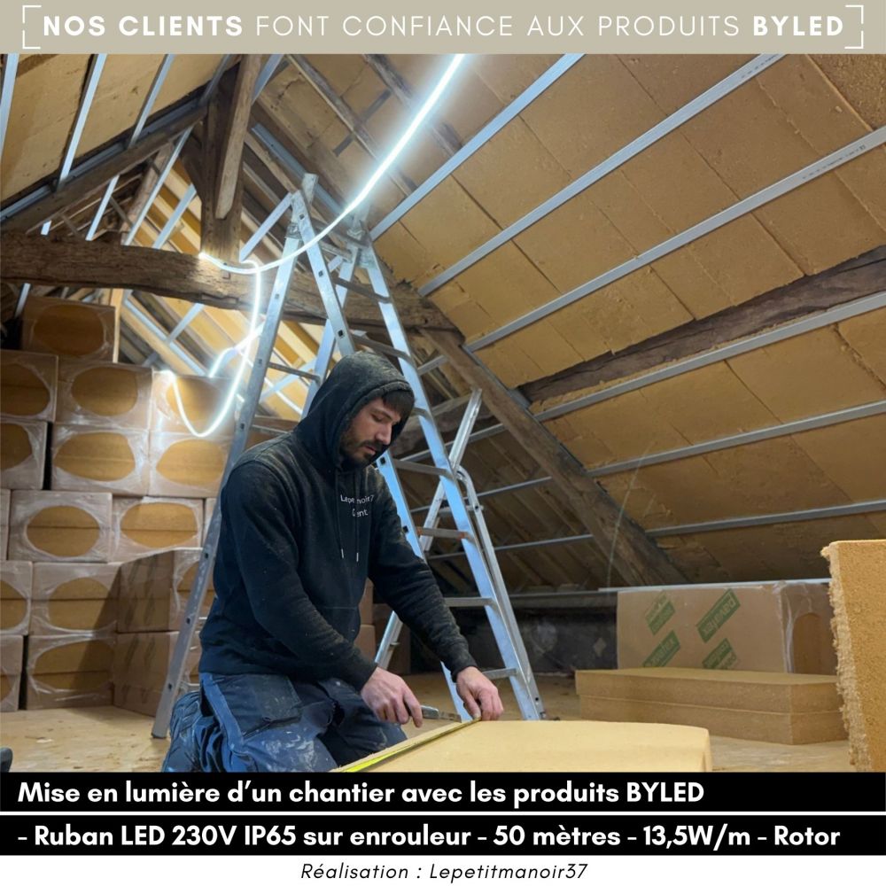 Le ruban LED de chantier ByLED a été développé pour répondre à deux problématiques principales que n'offrent pas les rubans 230V classiques :