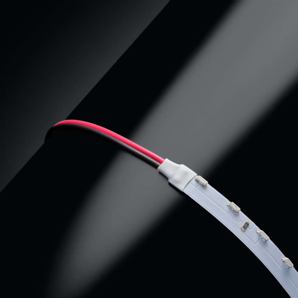 Aussi, chaque ruban est pré-câblé des deux côtés avec un câble de 30cm.