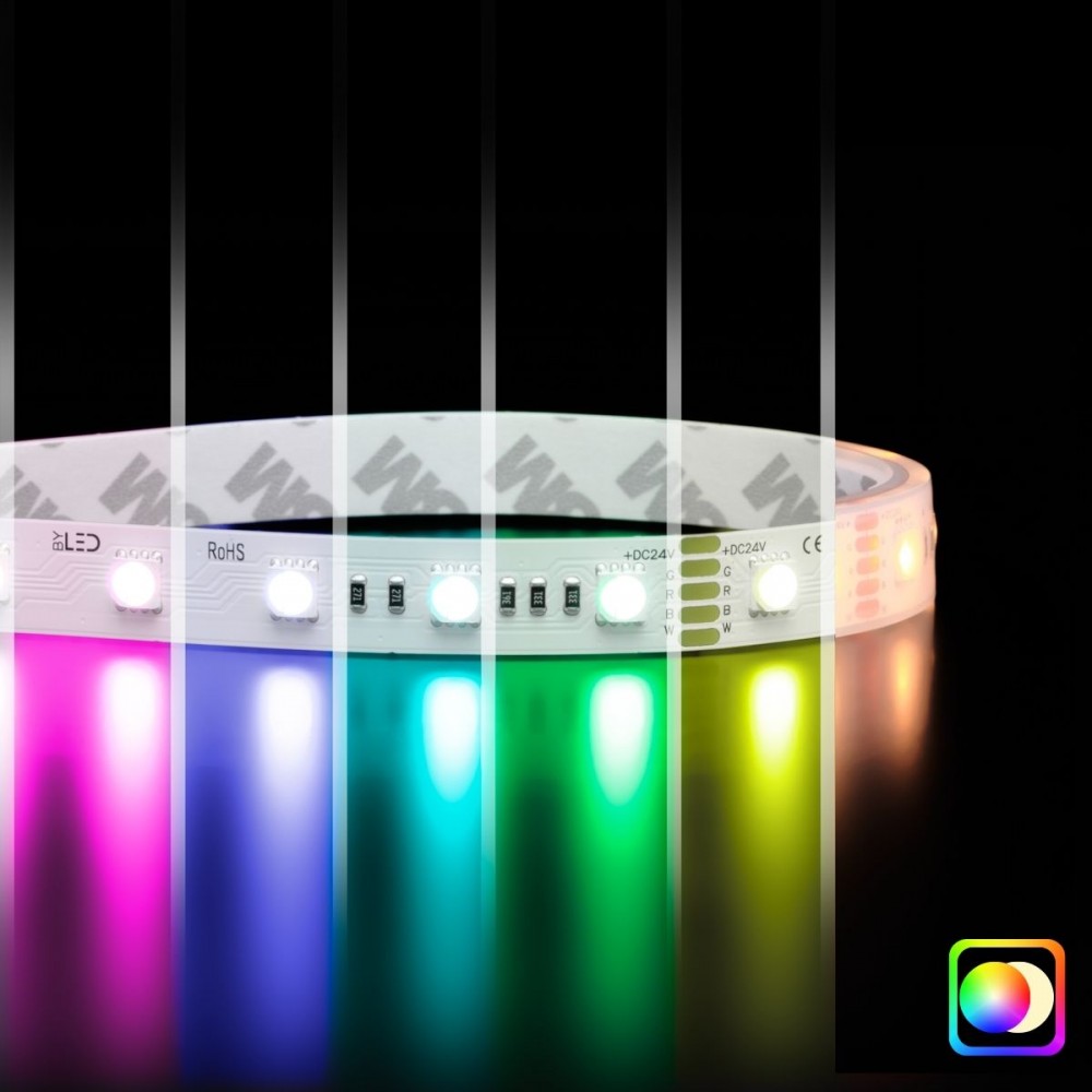 Ce modèle se distingue par la possibilité de délivrer une multitude de couleur tout en proposant également un éclairage en blanc chaud pour une ambiance chaleureuse. Ce ruban fonctionne à l'aide d'une télécommande et d'un contrôleur RGB + blanc, disponibles dans la rubrique Rubans / Accessoires de commande.