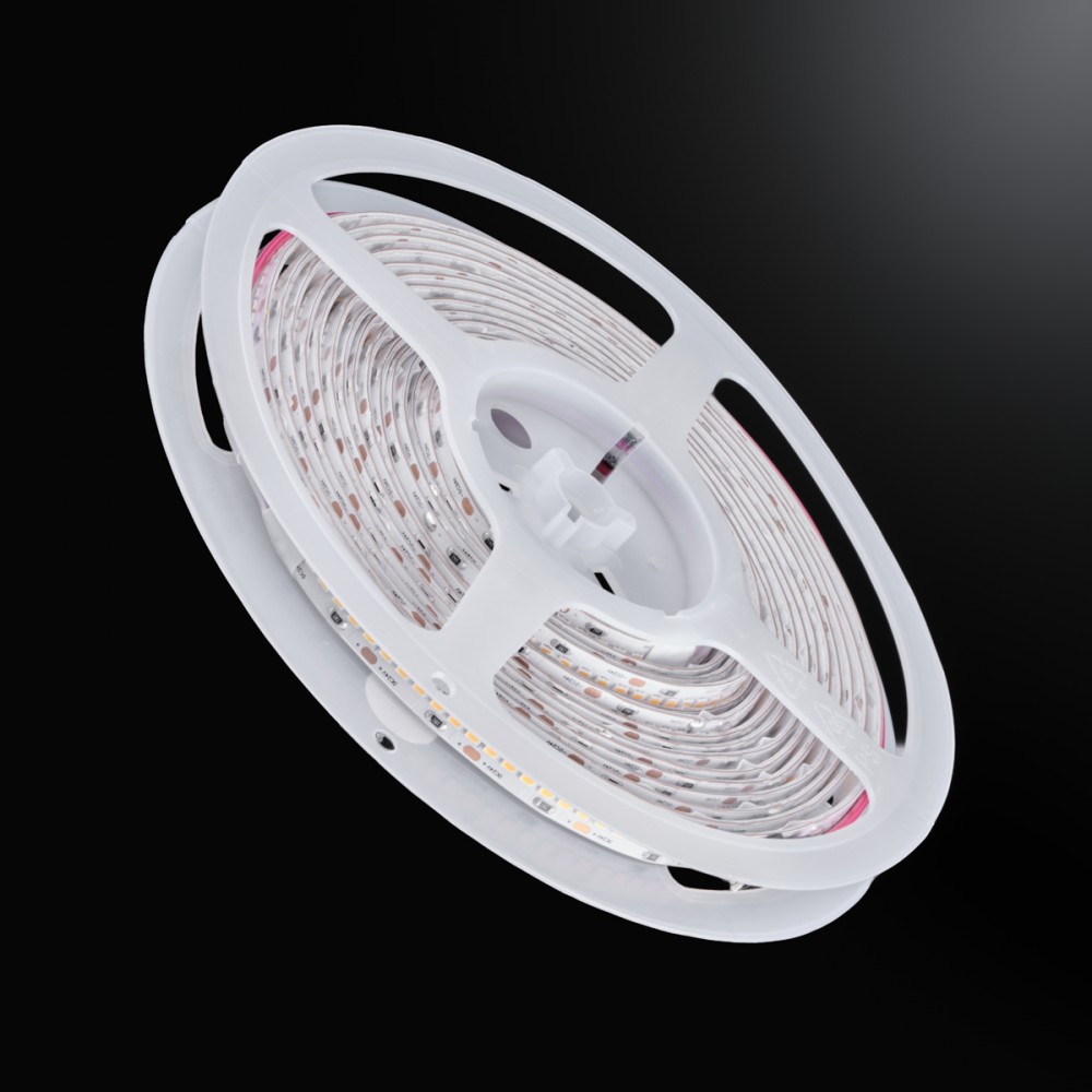 Sa forte puissance lumineuse de 19.2W par mètre offre un confort visuel à vos clients. Avec ses 240 LED par mètre, la lumière est diffusée de manière linéaire, grâce au faible espace existant entre les LED. Pour lisser encore plus la diffusion de la lumière et obtenir un effet néon, nous vous conseillons d'intégrer votre ruban dans un profilé pour ruban LED au diffuseur givré.