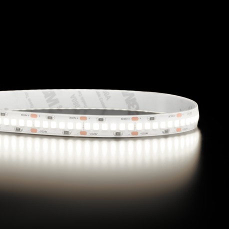 Sa forte puissance lumineuse de 19.2W par mètre offre un confort visuel à vos clients. Avec ses 240 LED par mètre, la lumière est diffusée de manière linéaire, grâce au faible espace existant entre les LED. Pour lisser encore plus la diffusion de la lumière et obtenir un effet néon, nous vous conseillons d'intégrer votre ruban dans un profilé pour ruban LED au diffuseur givré.