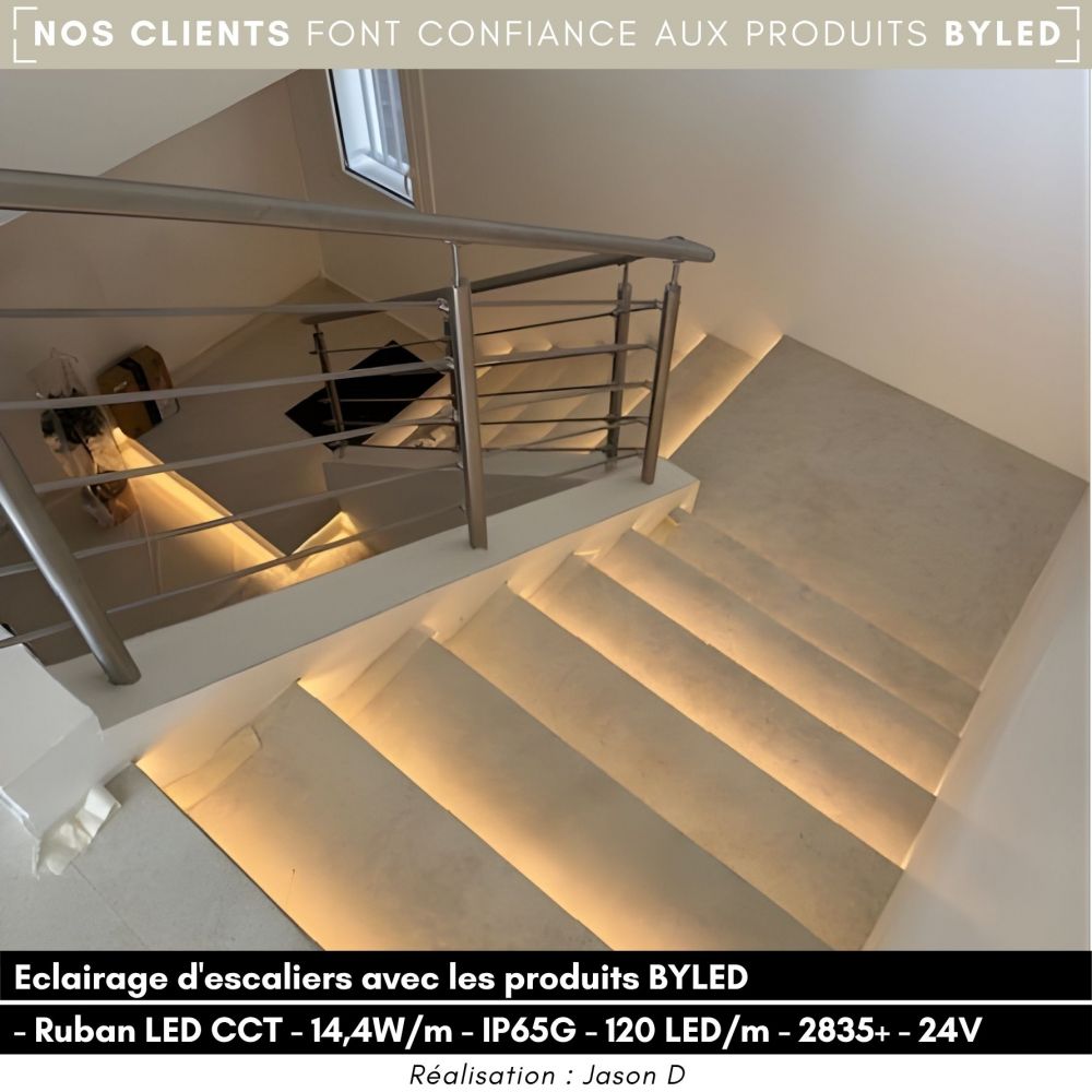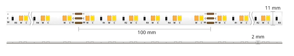 Vous cherchez un éclairage avec une luminosité élevée ? Le ruban LED CCT 2835+ est adapté à vos besoins ! Avec ses 14.4W/m, ce ruban LED fournit une lumière plus intense que les rubans LED classiques du commerce ce qui vous offre un choix d'utilisation assez large. Vous pouvez l'utiliser pour éclairer de grandes surfaces, des vitrines ou même de grands locaux de co-working.