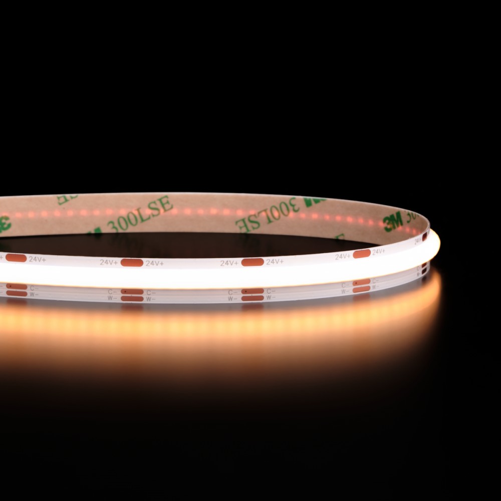 Contrairement aux rubans LED classiques à 120 LED/m qui laissent apparaître des points lumineux, ce ruban COB diffuse une lumière parfaitement homogène. En effet, grâce à ses 608 LED/m le rendu est net, continu et élégant : idéal pour des finitions haut de gamme.