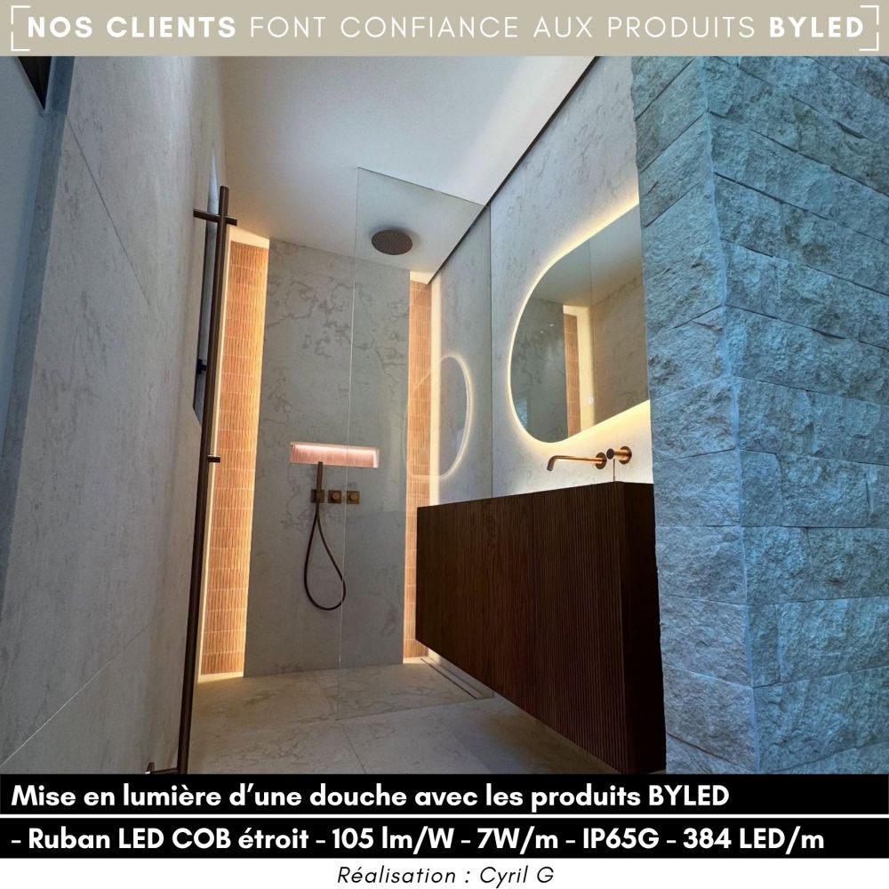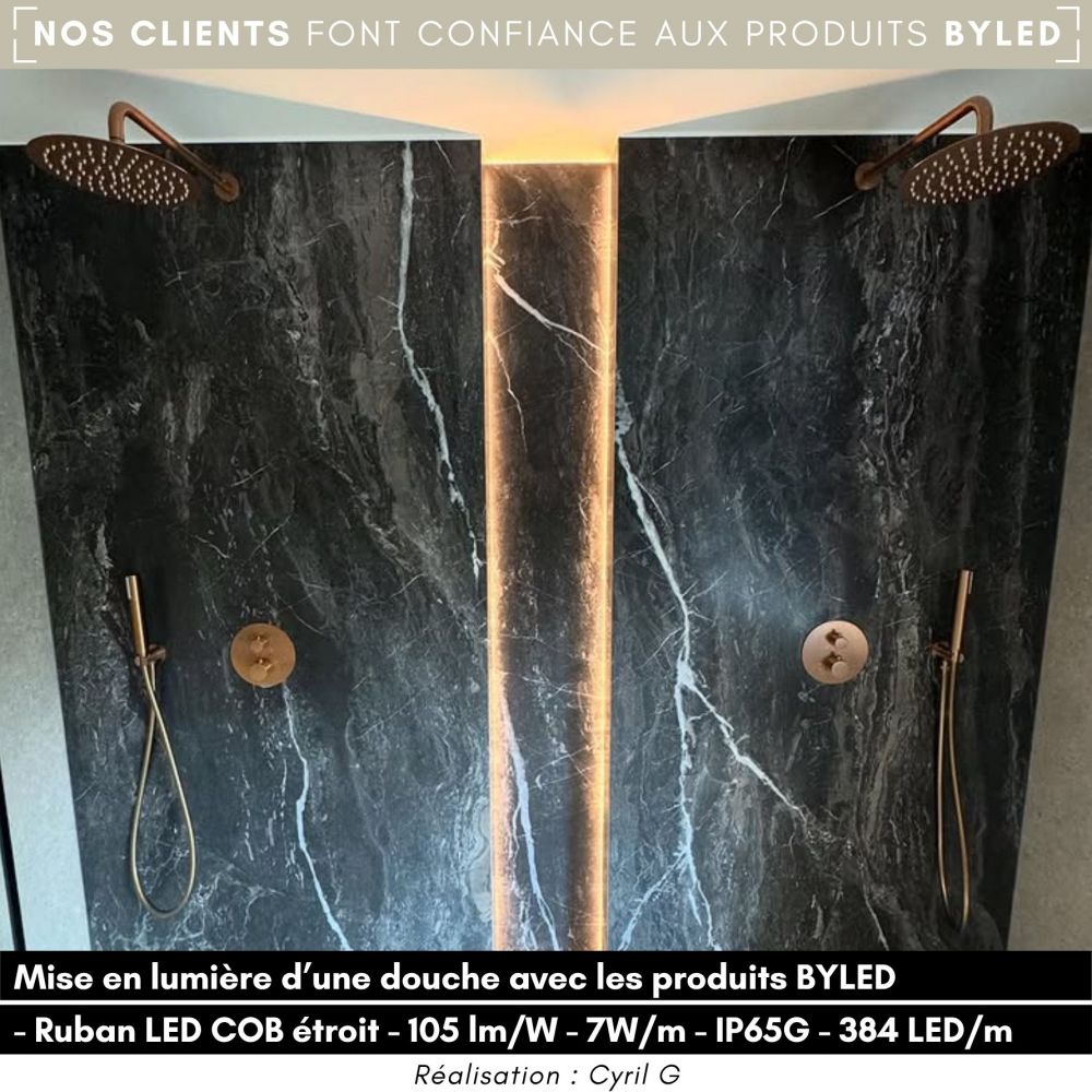 Quel est l'avantage du procédé COB ? Il intègre un grand nombre de puces LED ce qui permet de créer une lumière plus homogène sans interruption, garantissant une meilleure couverture lumineuse. Grâce à ses 384 LED par mètre ce ruban LED COB étroit se fondra parfaitement dans vos créations, apportant esthétisme et modernité.
