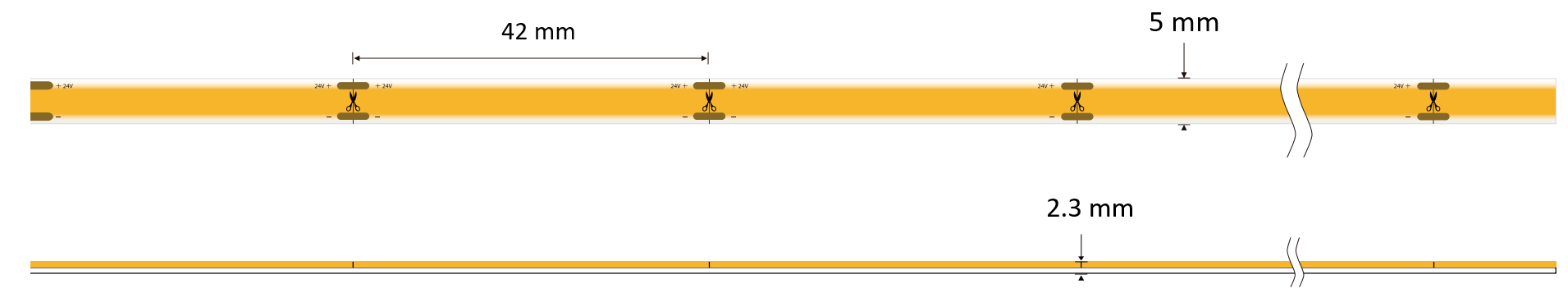 Le ruban LED COB étroit a un atout majeur, il est très fin (5mm de largeur) ce qui lui permet de se faufiler dans tous les recoins de votre intérieur et extérieur ainsi que dans des profilés "étroits". Il offre la possibilité d'ajouter un éclairage supplémentaire et de sublimer n'importe quel espace. Il peut par exemple, être installé sous les meubles de cuisine ou de salle de bain pour illuminer les comptoirs et les éviers, ou encore sous les marches d’escalier pour instaurer une ambiance à la fois plaisante et pratique.