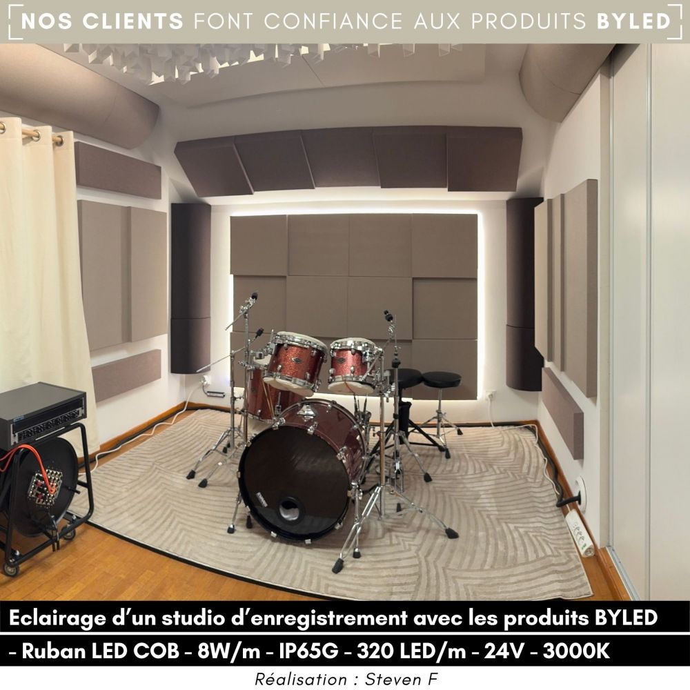Découvrez le ruban LED "COBH" ByLED, qui surpasse les performances des rubans LED classiques. Offrant une efficacité lumineuse de 115 lm/W, contre 100 lm/W pour un ruban LED standard : il offre une luminosité supérieure de 15%, grâce à l'utilisation de puces LED de qualité supérieure.