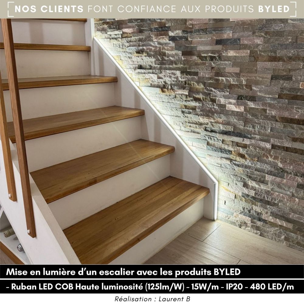 Chez ByLED, nous vous recommandons d’installer votre ruban LED dans un profilé en aluminium pour une installation à la fois plus durable et plus esthétique. Explorez notre gamme de profilés encastrables, en applique ou à carreler.