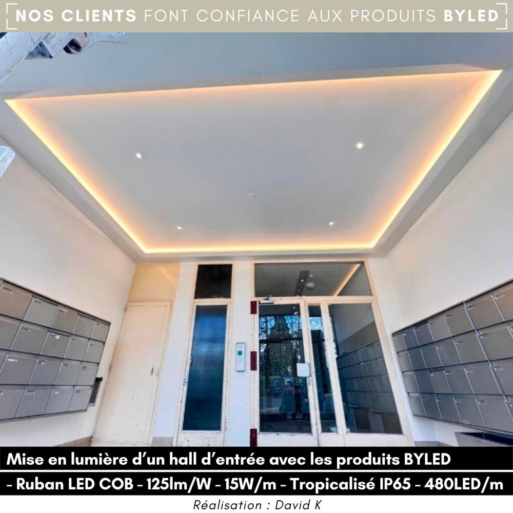 Ce ruban LED blanc monochrome exploite la technologie "Chip On Board" (COB) avec une densité élevée de 480 LED par mètre, garantissant un éclairage homogène et un rendu lumineux en ligne continue. Une solution idéale pour un éclairage à la fois performant et moderne !