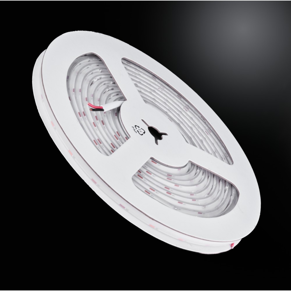 Cette technologie de LED blanches ne se limite pas à l’esthétique et se distingue également par ses performances lumineuses élevées. Avec une efficacité de 130 lm/W, le ruban délivre un flux lumineux supérieur, atteignant jusqu’à 30 % de luminosité supplémentaire par rapport aux rubans COB standards. Sa conception optique optimisée, associée à une densité de 288 LED par mètre, garantit une lumière parfaitement uniforme, sans effet de points visibles, contrairement aux générations précédentes plus densément équipées.