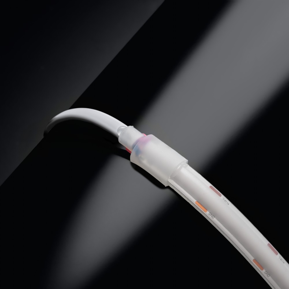Le ruban LED COB Performance adopte un silicone blanc au rendu soigné, offrant une alternative nettement plus contemporaine aux finitions jaunes des rubans LED traditionnels. Même hors fonctionnement, il conserve une apparence discrète et élégante, facilitant son intégration dans tous types d’environnements.