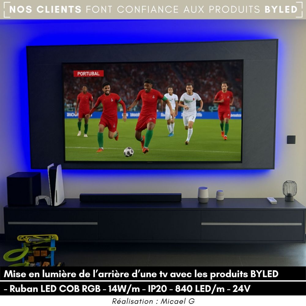 Avec une puissance de 14W par mètre, ce nouveau ruban LED COB RGB délivre une lumière colorée et intense, idéale pour des environnements chaleureux. Conçu pour un usage en intérieur, ce ruban s’adapte parfaitement aux environnements secs comme les salons, bureaux ou vitrines.