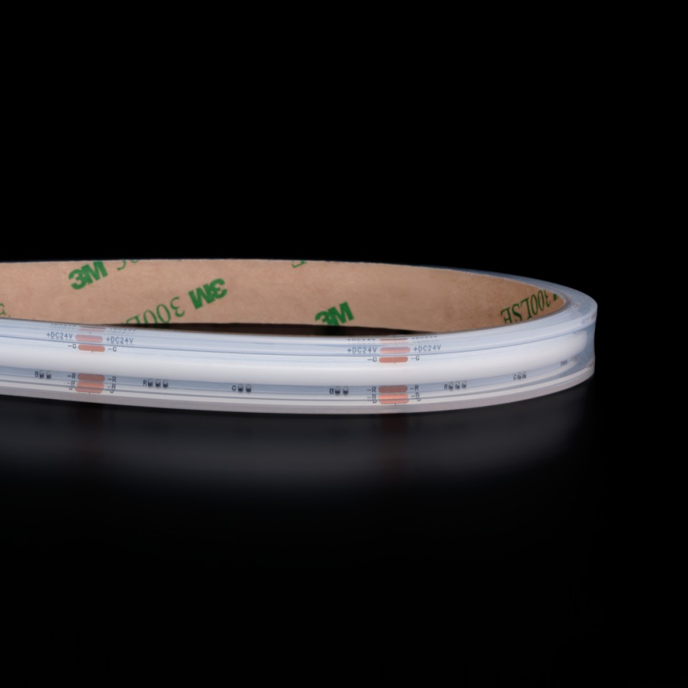 Ce ruban LED intègre un grand nombre de puces lumineuses par mètre : 840 LED/m. Grâce à la technologie COB (Chip-On-Board), cette densité élevée de LED rapprochées garantit une lumière continue, fluide et uniforme sur toute sa longueur, éliminant ainsi l'effet "point de LED" souvent visible sur les rubans traditionnels.