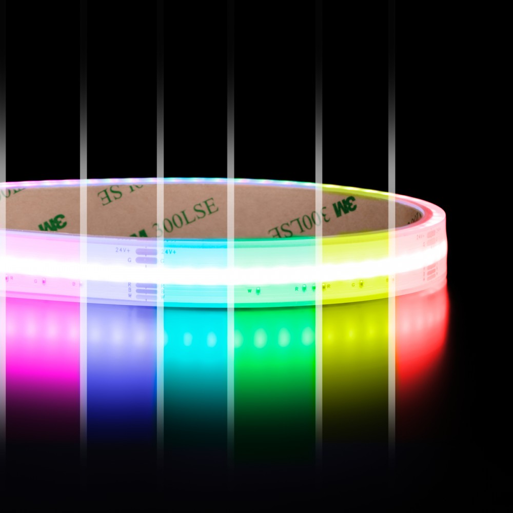 Vous recherchez un ruban LED capable de produire de la couleur et du blanc ? Ce ruban vous permettra à la fois de créer une ambiance festive avec un choix de couleurs infini mais aussi de créer un éclairage plus classique avec la lumière blanche intégrée.