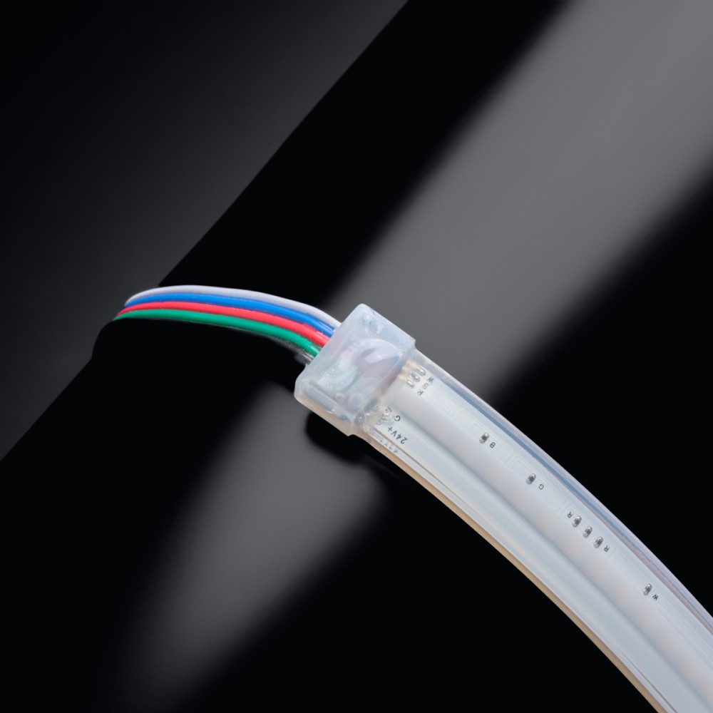 Si vous souhaitez une taille de ruban LED supérieure ou inférieure à 5 mètres, vous aurez besoin de connectiques étanche "Hippo" pour ruban COB RGB+Blanc. Retrouvez toutes les connectiques Hippo RGB+Blanc en cliquant ici. Besoin d'une prestation sur mesure ? Contactez-nous !