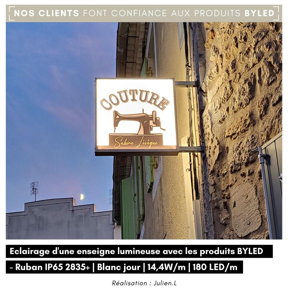 Avec ses 180 LED par mètre, la lumière est diffusée de manière linéaire, grâce au faible espace existant entre les LED. Pour lisser encore plus la diffusion de la lumière et obtenir un effet néon, nous vous conseillons d'intégrer votre ruban dans un profilé pour ruban LED au diffuseur givré.