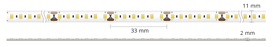 Chaque ruban LED est équipé d'un puissant adhésif (3M©) afin de la faire adhérer parfaitement sur une surface plate de type profilé LED. Ce ruban est découpable sur les repères de coupe, tous les 3.3cm et est fourni sans câblage.