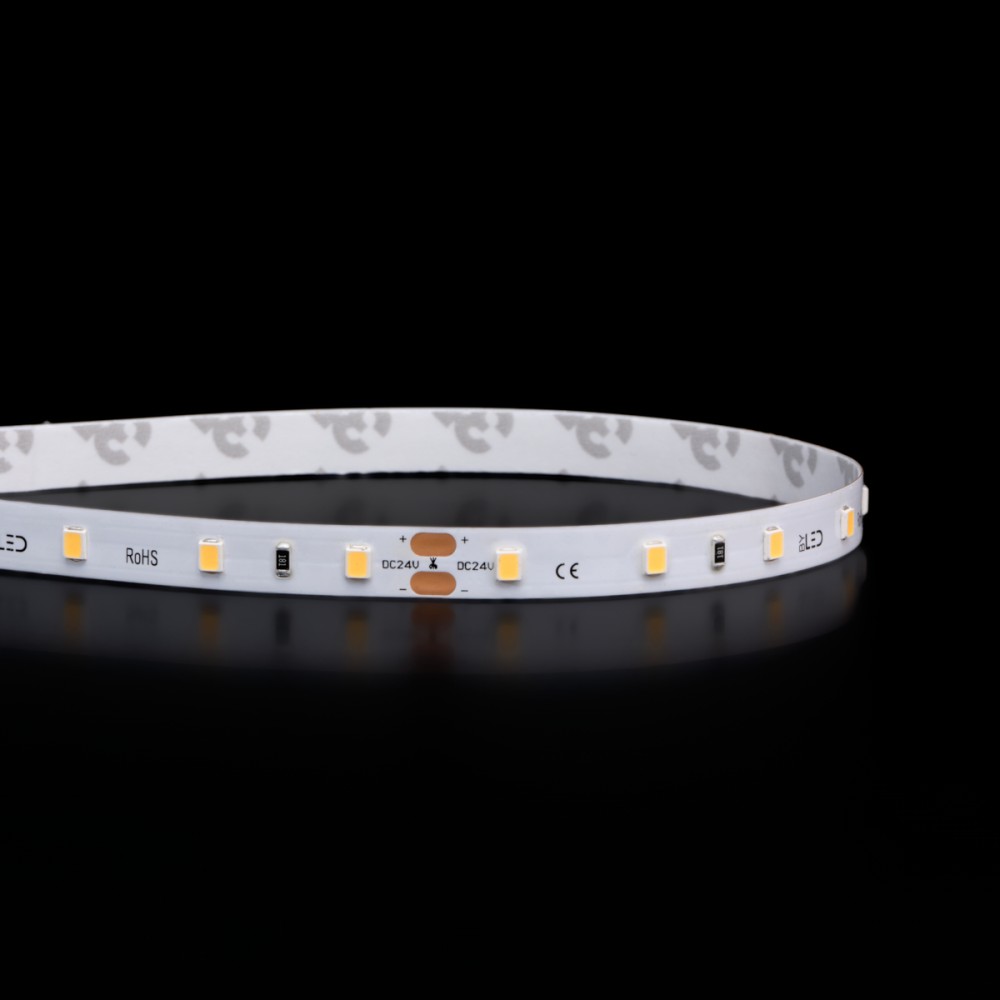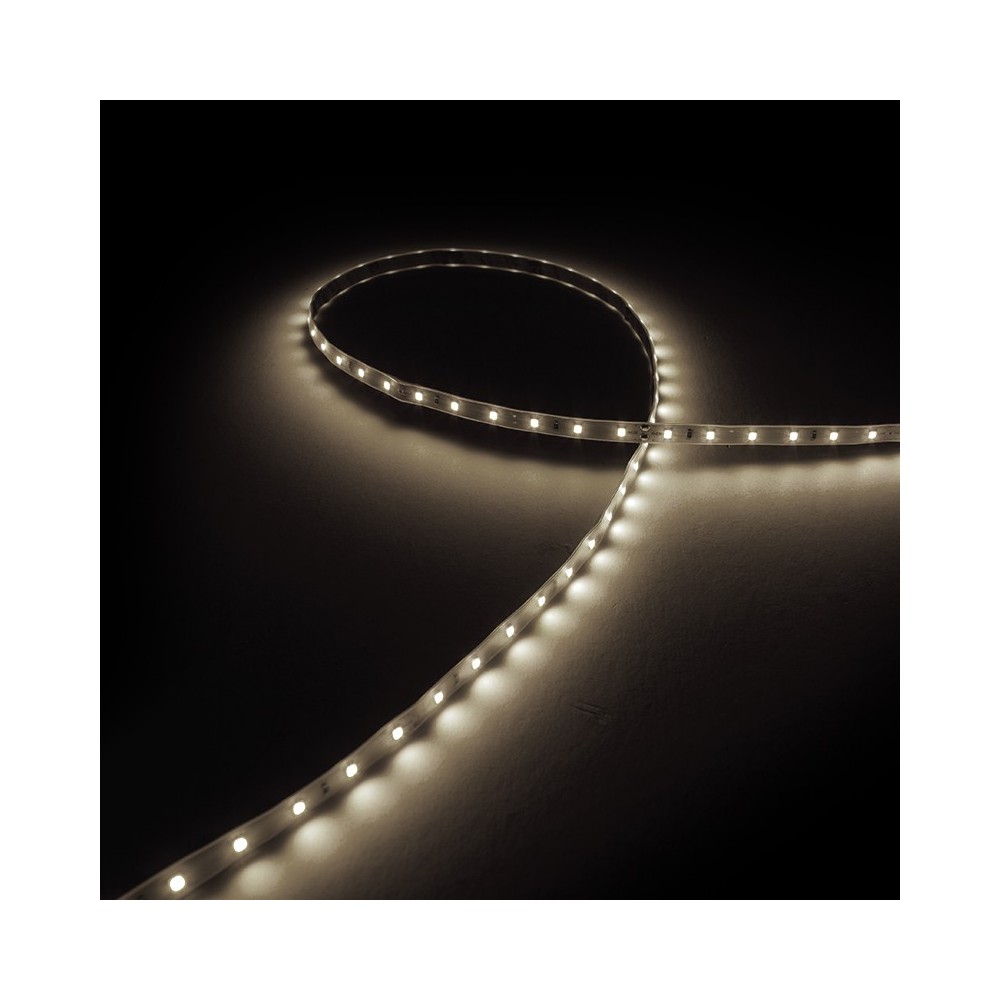 Le ruban LED blanc 2835+ donne une intensité lumineuse légère. Avec ses 4,8W/m, il diffuse une luminosité douce, parfaite pour les installations où une lumière indirecte est souhaitée. Vous pouvez donc utiliser ce ruban pour un effet décoratif, comme dans une cuisine, un meuble, sur une étagère, ou autour des cadres de fenêtres. Il permet une installation discrète et efficace.