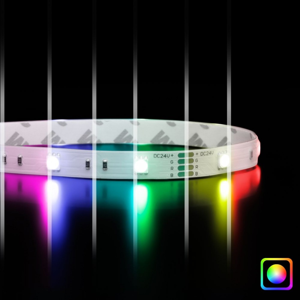 Grâce à ce ruban LED multicolore (RGB) IP65 5050, tout est possible : selon l'ambiance recherchée et votre humeur vous pouvez varier la couleur et l'intensité de l'éclairage à l'infini, le tout à distance grâce à un contrôleur et une télécommande (vendue séparément).