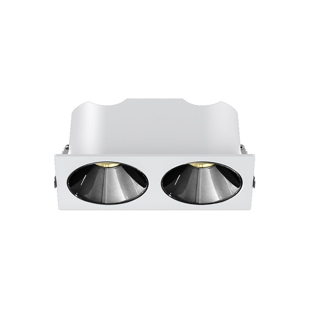 Ce spot LED carré à double réflecteur, revisité avec un effet miroir ou mat personnalisable, est un basique de l'éclairage intérieur grâce à ses 2x7 watts de puissance, soit l'équivalent de 140 Watts halogène.