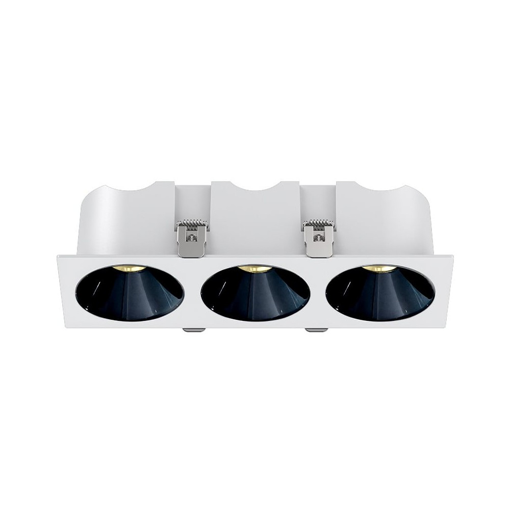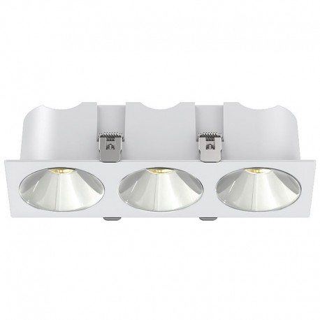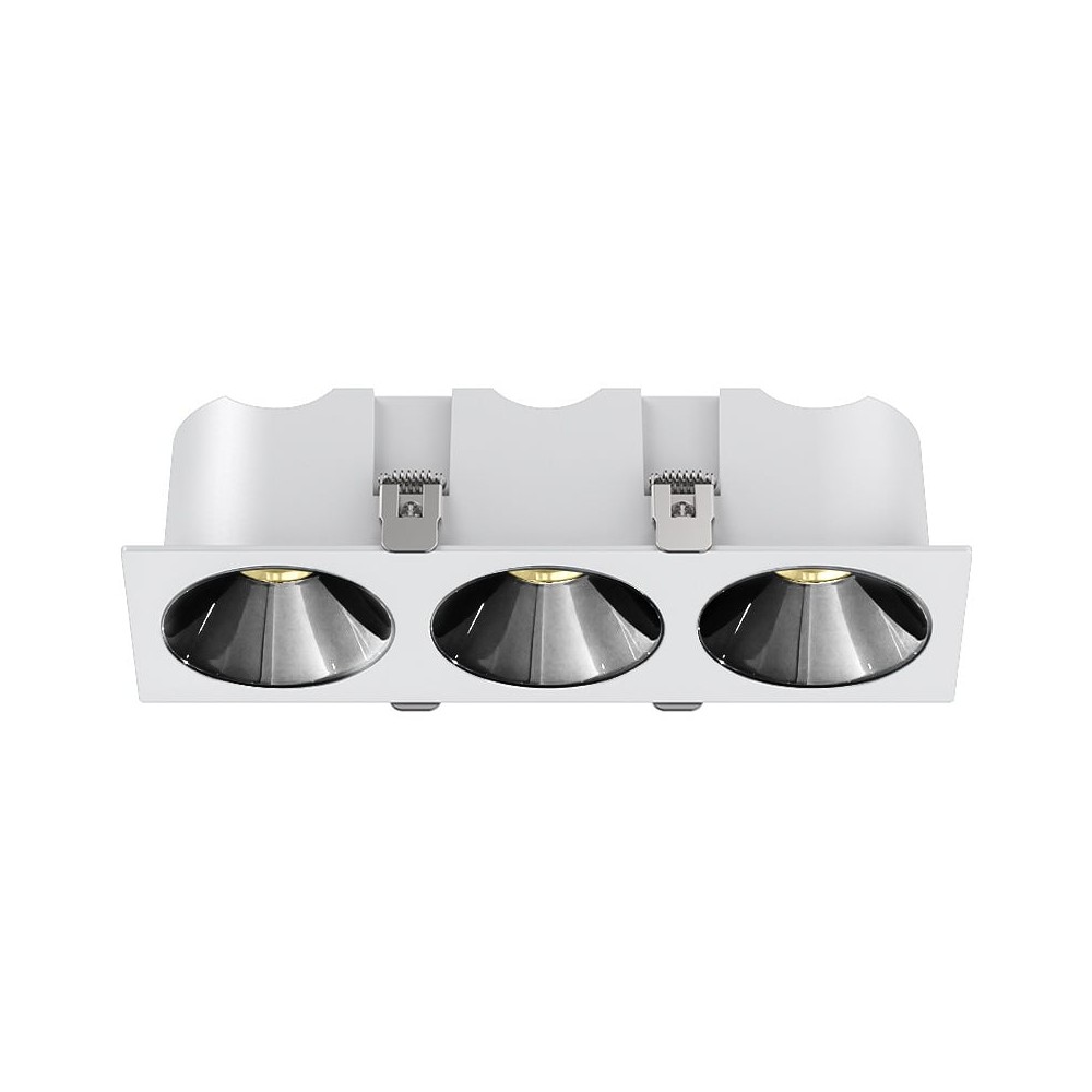 Ce spot LED carré à triple réflecteur, revisité avec un effet miroir "canon de fusil", est un basique de l'éclairage intérieur grâce à ses 2x7 watts de puissance, soit l'équivalent de 140 Watts halogène.