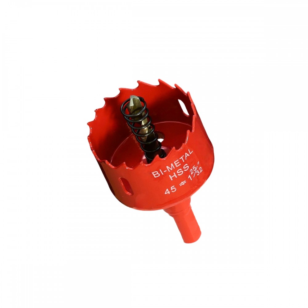 Fabriquée pour les professionnels du bâtiment dans un alliage bi-métal très robuste, cette scie cloche est conçue pour percer des trous de 45mm de manière usuelle et répétée dans différents matériaux tels que les plaques de plâtre BA13, le bois, le plastique PVC, les panneaux de construction et l'aluminium ou l'acier (lubrification recommandée pour le perçage des métaux).