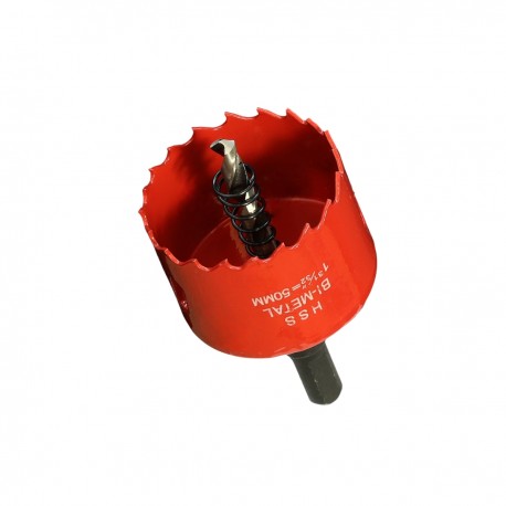 Cette scie cloche de 50mm est équipée d'un foret de centrage muni d'un ressort d'évacuation qui éjectera automatiquement la pièce découpée.