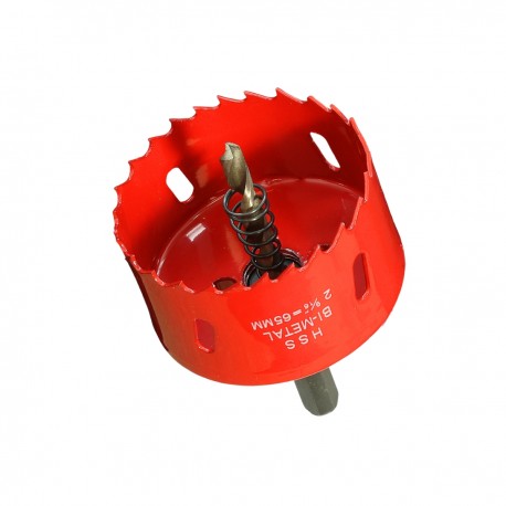 Cette scie cloche de 65mm est équipée d'un foret de centrage muni d'un ressort d'évacuation qui éjectera automatiquement la pièce découpée.