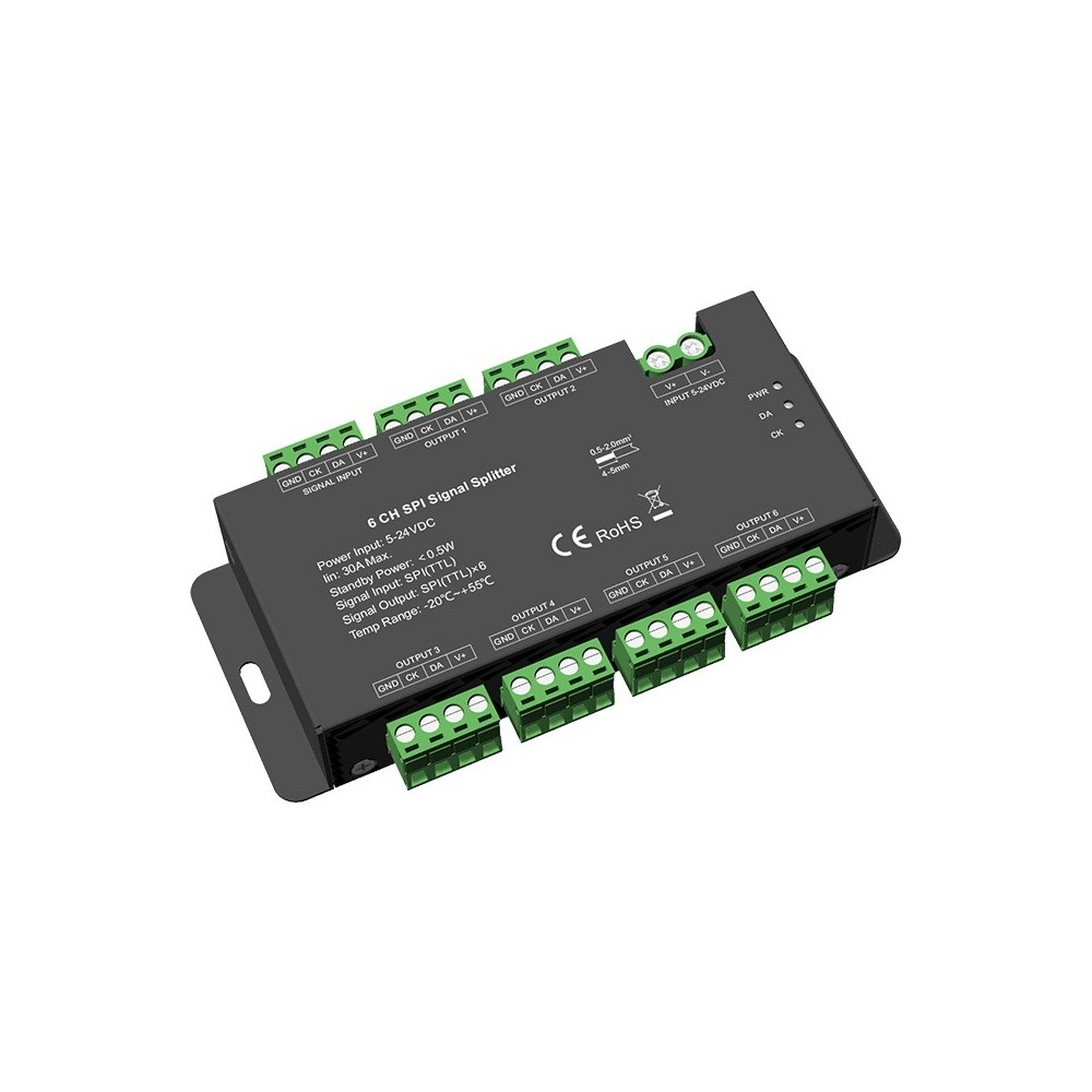 Ce splitter permet de répéter le signal de votre contrôleur digital SPI sur plusieurs rubans LED SPI en même temps.