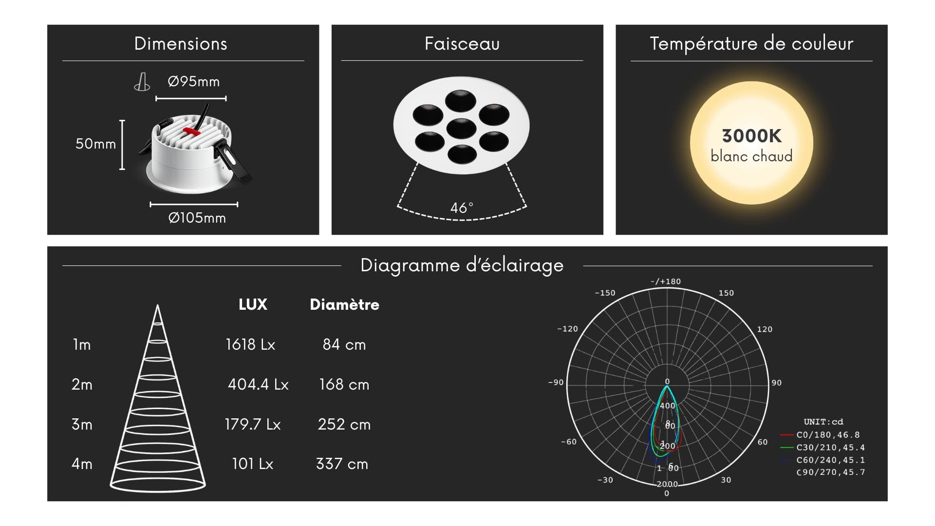 | Température de couleur - Blanc chaud | 3000 K |