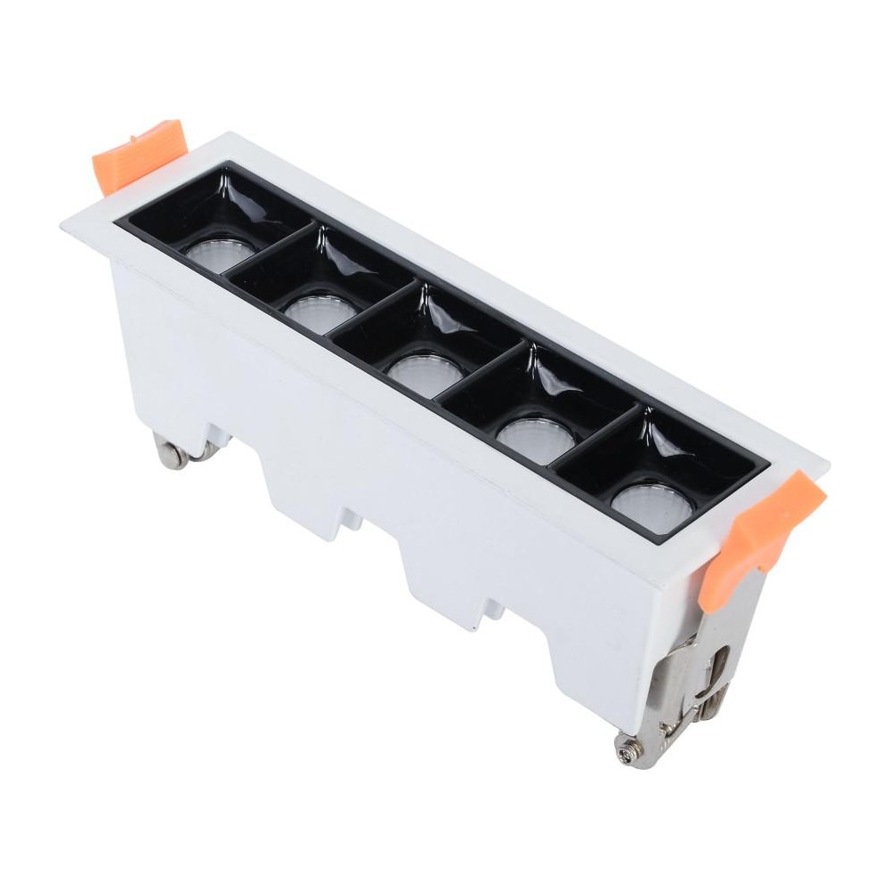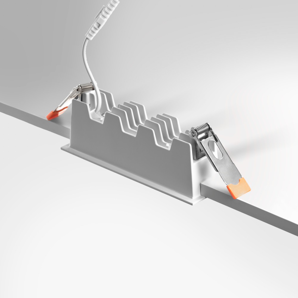 Le spot LED encastrée LINEA se distingue particulièrement par son design rectangulaire ultra moderne. La finition brillante noire ou blanche sur chaque LED offre un jeu de volume et de texture, une fois le spot encastré dans votre plafond.