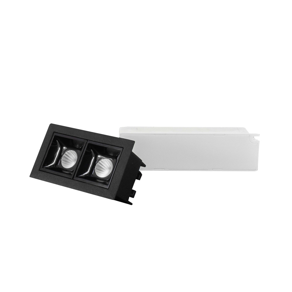 Le spot LED encastrée LINEA se distingue particulièrement par son design rectangulaire ultra moderne. La finition noire sur chaque LED offre un jeu de volume et de texture, une fois le spot encastré dans votre plafond.
