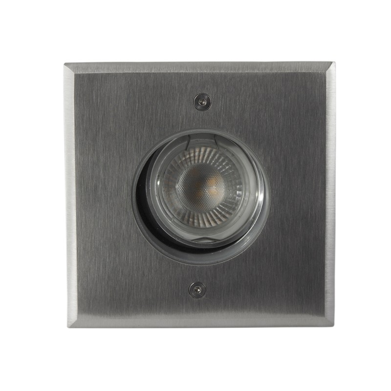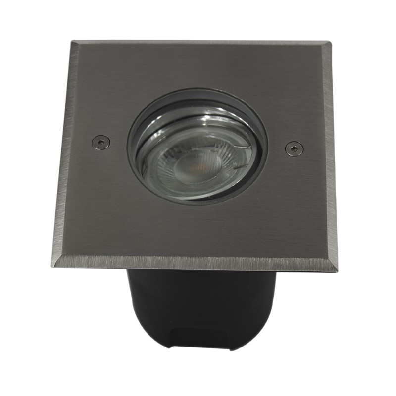 Spot LED inox encastrable sol carré orientable pour source LED GU10 (non incluse)