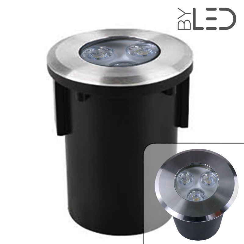 L'utilisation du pot (partie en plastique noire) devra être conservé afin de protéger le corps de l'appareil du contact direct avec la terre. Un drainage suffisant (gravier) devra être réalisé afin d'éviter la stagnation de l'eau sous le spot. Une attention particulière (étanchéité) devra être porté aux connexion électriques si celles-ci sont enterrées.