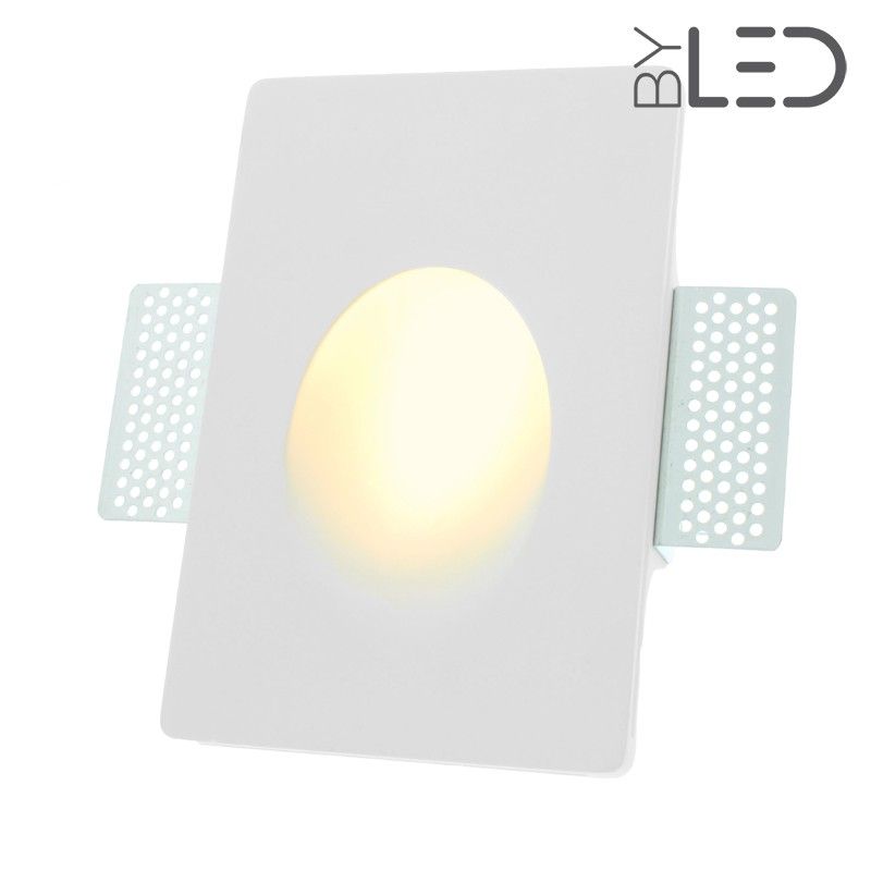 Ce spot LED offre un faisceau lumineux dirigé vers le bas à travers une ouverture arrondie. La source lumineuse étant cachée, la lumière réfléchit sur le spot en plâtre pour un effet très moderne.