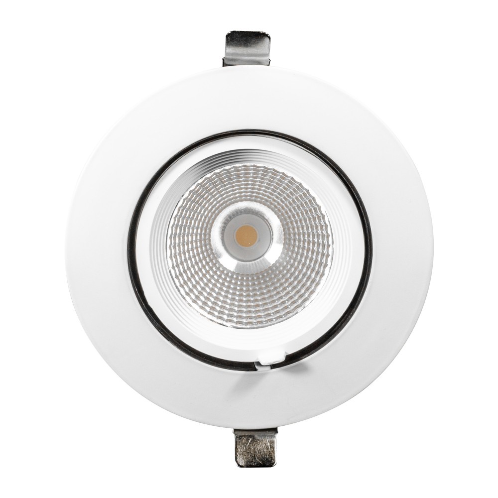 Ce projecteur LED encastrable diffuse une lumière douce et intense adapté à toutes sortes d'environnements, des salles d'exposition aux espaces de vente. Son indice de rendu des couleurs supérieur à 90 fait que votre éclairage ne dénature pas les couleurs de vos produits.