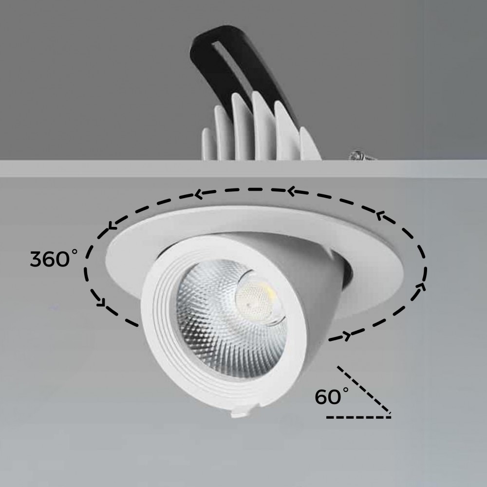 D'une polyvalence surprenante, il est capable de s'orienter à 360° et de s'incliner jusqu'à 60°. Cette double capacité vous permet de diriger la lumière avec précision là où elle est nécessaire, vous offrant une maîtrise totale sur la distribution lumineuse dans votre espace commercial.
