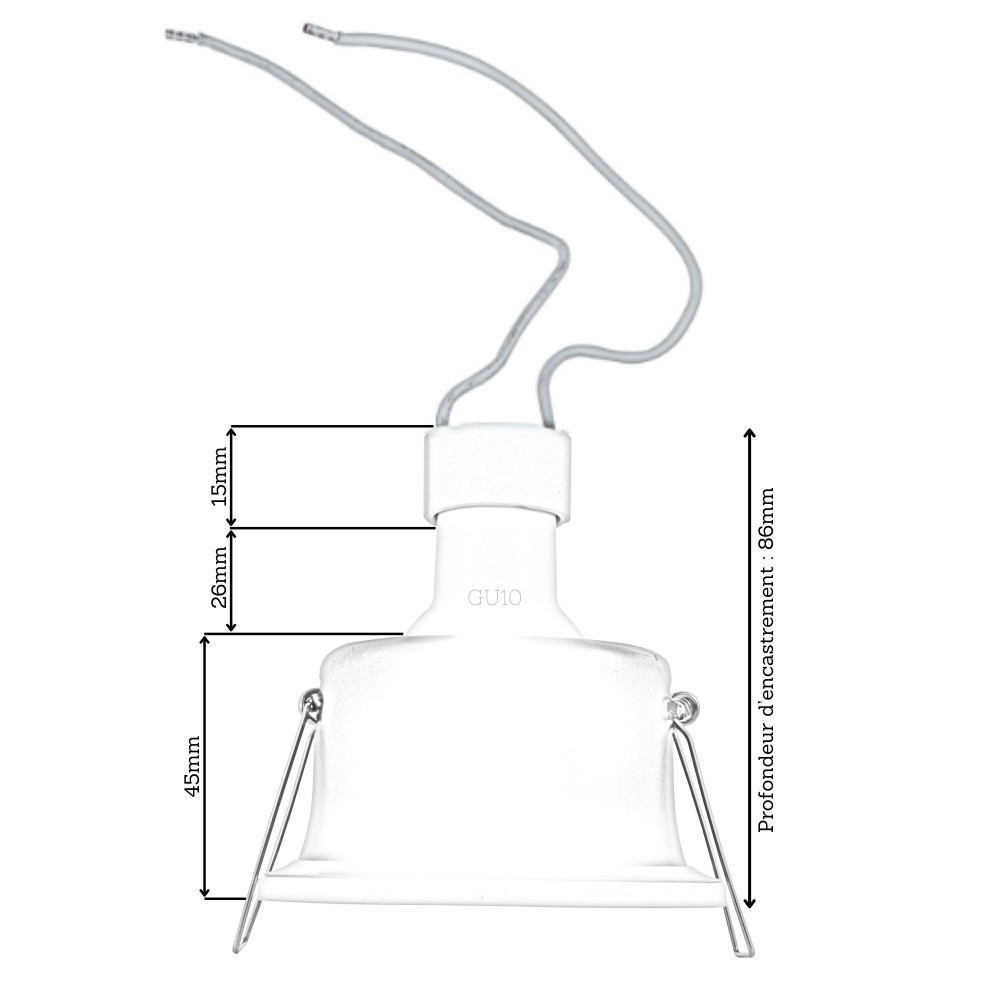 Le spot peut accueillir une source lumineuse de type GU10. Également, il convient de laisser un vide de 5 cm autour de la LED afin d’optimiser la dissipation de chaleur. Vous trouverez plus de détails dans la notice d’installation.