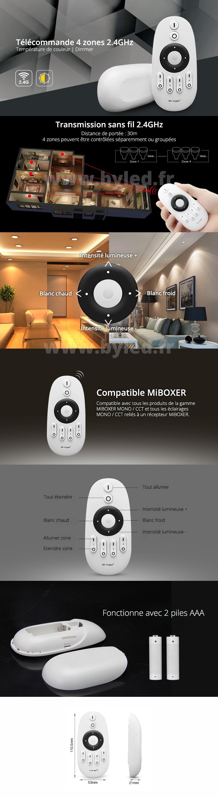 Vous trouverez une notice en français de l’ensemble de la gamme des contrôleurs Mi Light en téléchargement sur le site (onglet "téléchargement " dans les fiches produits concernées).