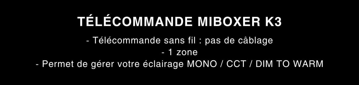 Afin de piloter vos éclairages très basse tension (5/12/24/48V) ou basse tension (230V), votre télécommande MiBoxer K3 doit obligatoirement être associée à un contrôleur MiBoxer.
