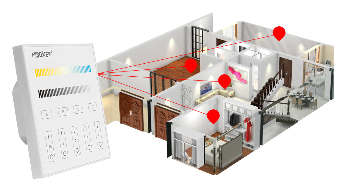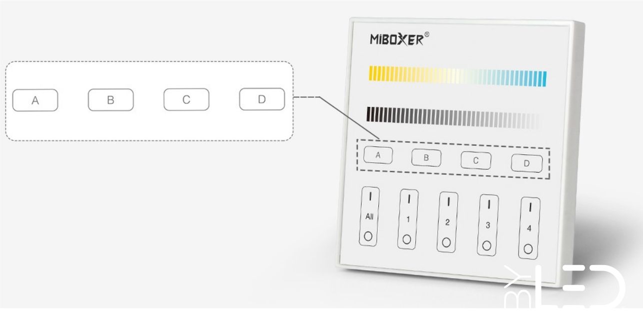 Configurez chaque éclairage facilement en appuyant sur le bouton Adresse unicast (0-63), adresse multicast (0-15), adresse de diffusion (255), mode scène (0-15)