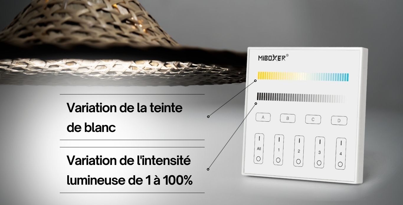 | Pour couleurs de ruban | 2 couleurs (Blancs chaud & pur) |