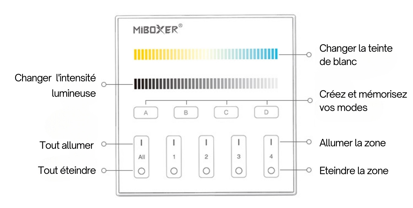 Pilotez l'allumage et l'extinction de votre éclairage ainsi que la variation de l'intensité lumineuse.![]()