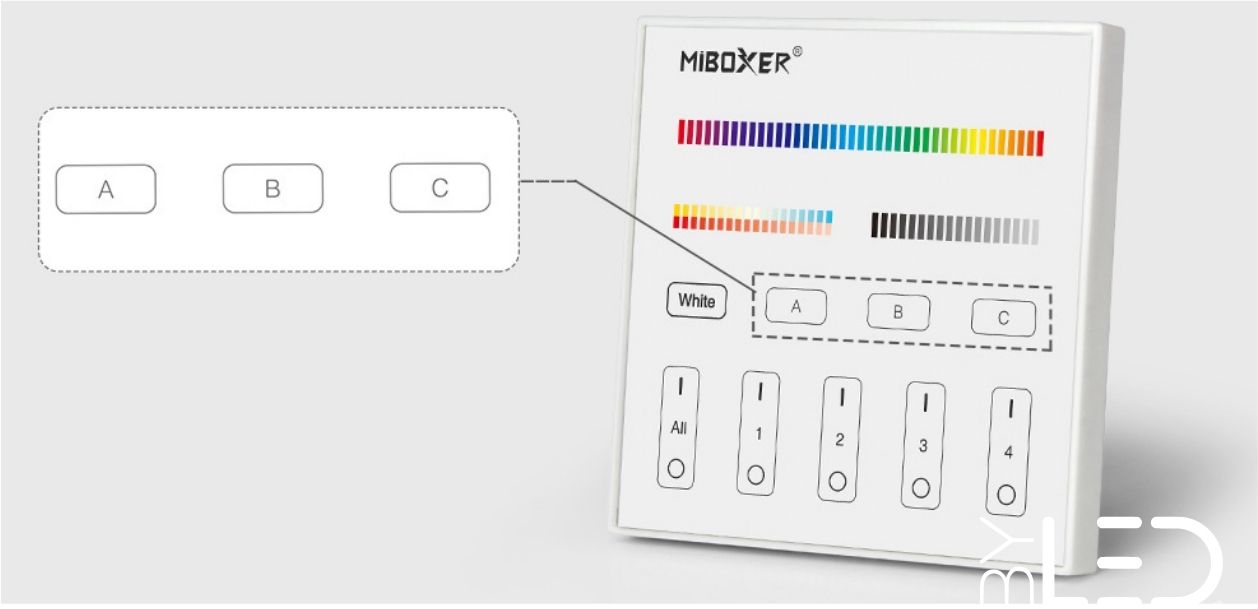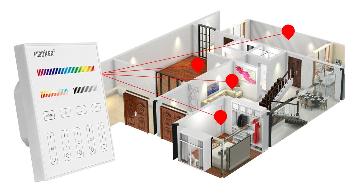 Configurez chaque éclairage facilement en appuyant sur le bouton Adresse unicast (0-63), adresse multicast (0-15), adresse de diffusion (255), mode scène (0-15)