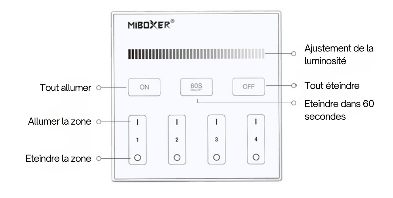 Cette télécommande 4 zones pour ruban LED mono-couleur vous permet de varier la lumière de 0 à 100%.