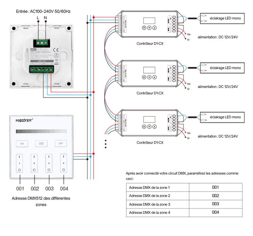 Pour leurs bons fonctionnements, vos rubans LED doivent être reliés à des contrôleurs dimmer DMX512 - MiBoxer D1-CX.